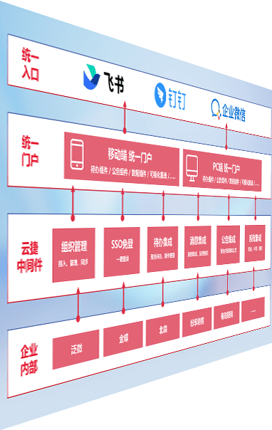 对协作平台提供支持服务,,支持企业应用与协作平台对接,,,包含组织同步、、、、消息集成、、待办集成等。。。。支持目前主流的协作平台:钉钉、、、企微和飞书。。