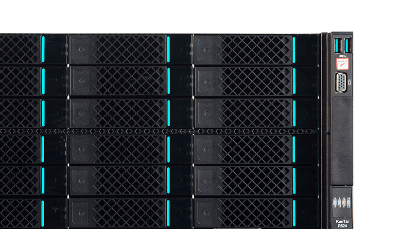 KunTai R524 存储型服务器是拉斯维加斯游戏数码基于鲲鹏处理器推出的新一代 ARM数据中心服务器。。。主要面向存储业务,,,,具有海量存储、、、、高性能、、、、低功耗以及易扩展的特点,,,,适合为大数据分析、、、软件定义存 储等应用场景的工作负载进行髙效加速。。。